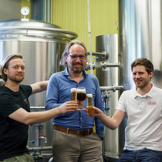 Chef Roman Schmidt zeigt sich mit seinen Braumeistern Jakob Marn und Horst Lechner, die seit 2023 in der Manufaktur tätig sind. Mit innovativen Ideen führen sie die Tradition fort und bereichern Lava Bräu mit ihrem Know-how. Fassgereifte Biere, wie das „Stout“ und „Brown Bear“ entstanden und auch das Brut IPA „Bräu Secco“ bringt einen prickelnd-fruchtigen Geschmack ins Sortiment von Lava Bräu.